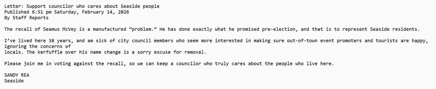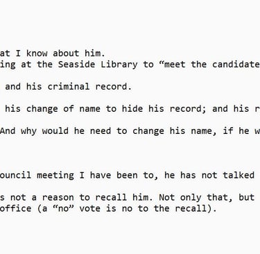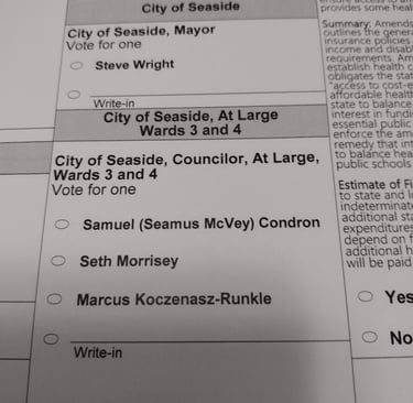 Claim 1- "Seamus McVey was elected to the Seaside City Council in 2024 without fully disclosing his past."